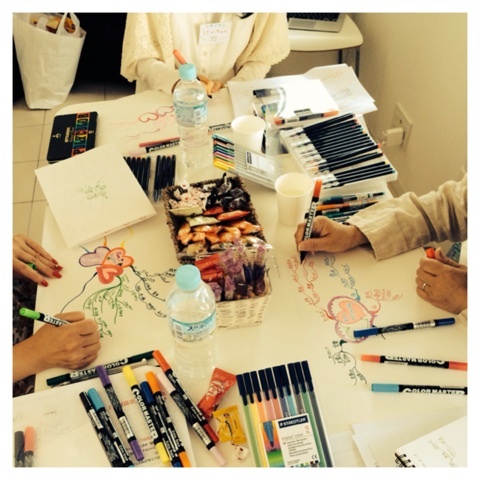 ・実際にマインドマップを描いてみます。この日は最低3枚はマインドマップを描きます。